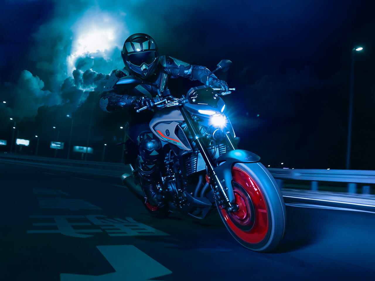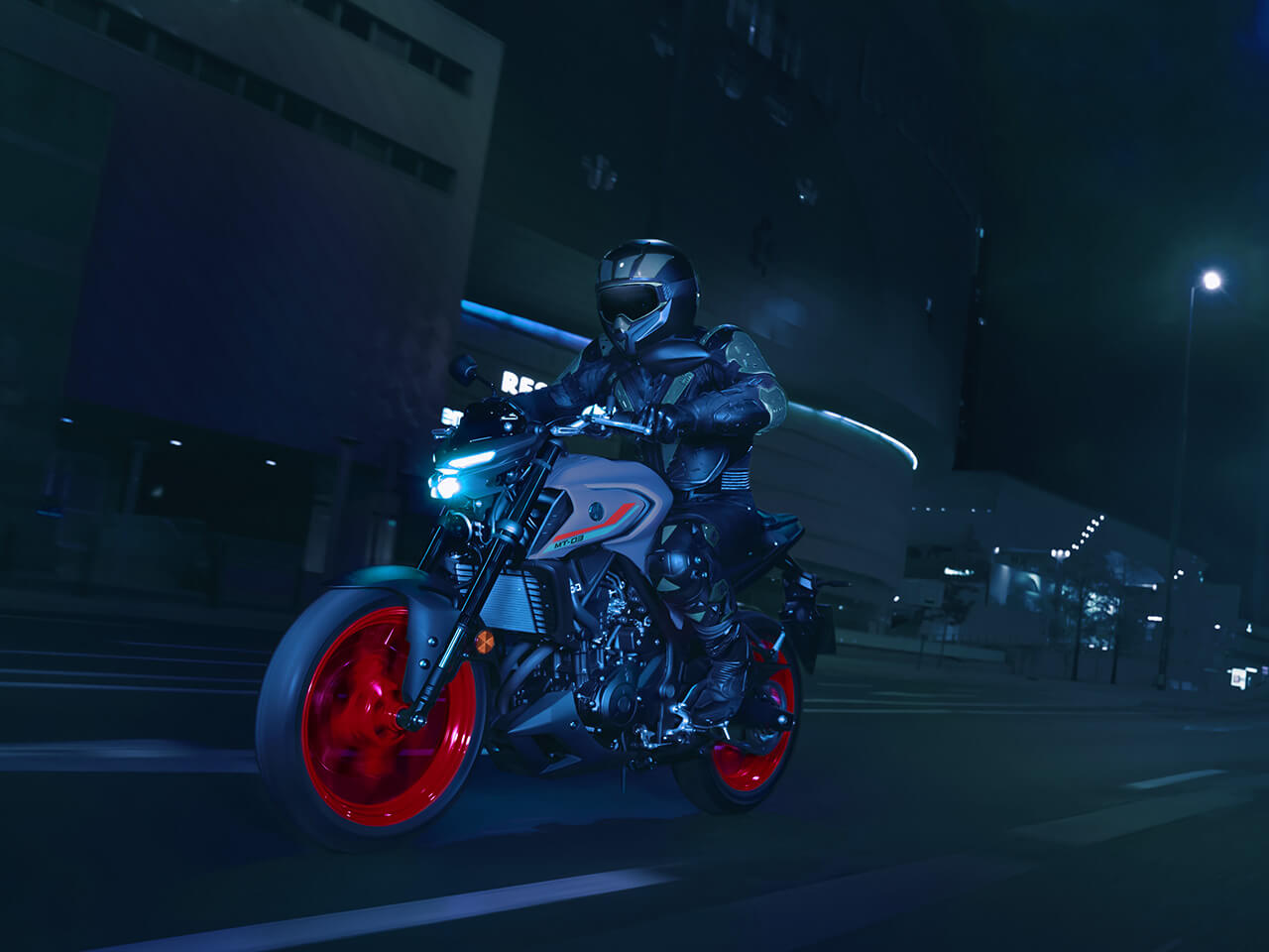 The 2020 MT-03 sports an aggressive new look that follows the hyper naked family theme. Its predatory twin-eye face projects the moodiest stare, and new upside-down forks and a restyled wide-shouldered fuel tank underline the shared MT dynamic.